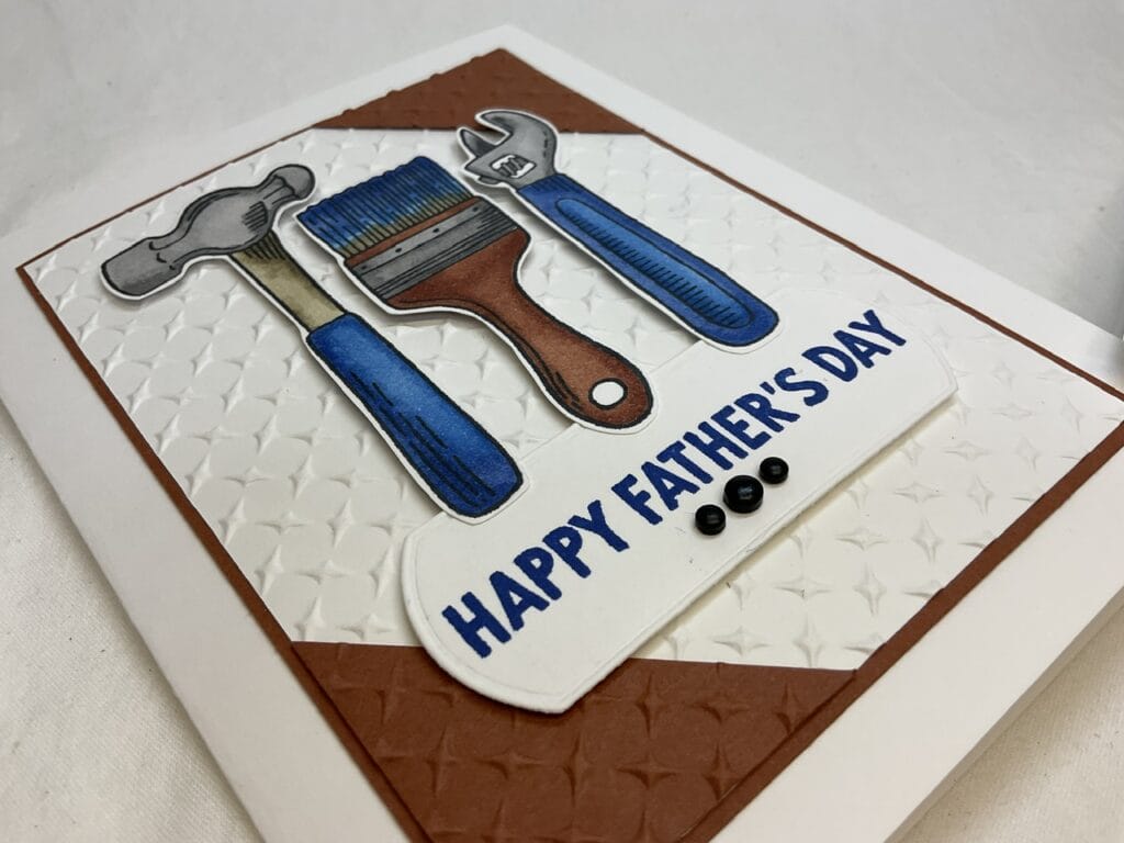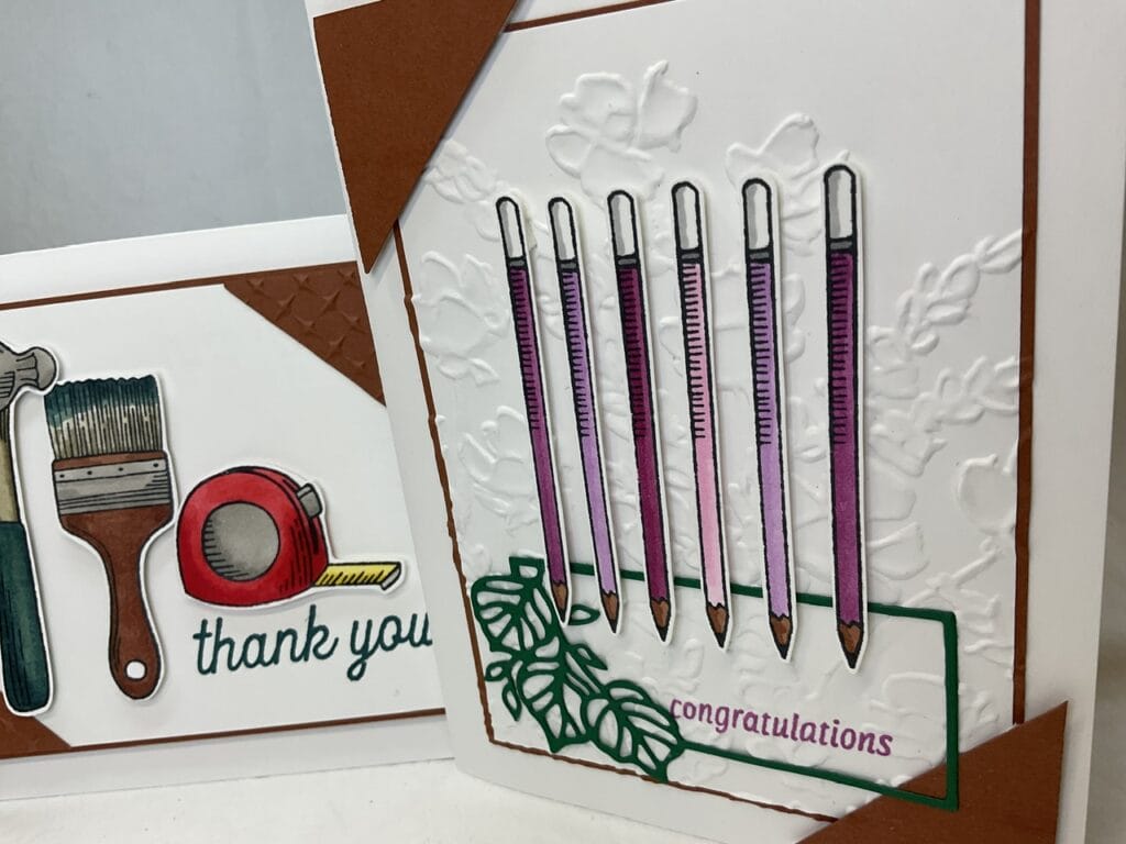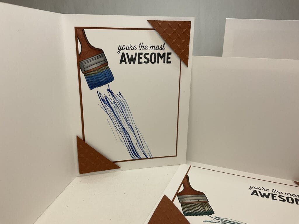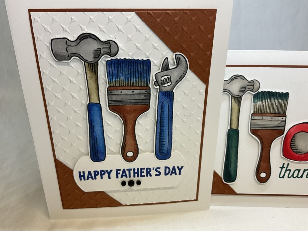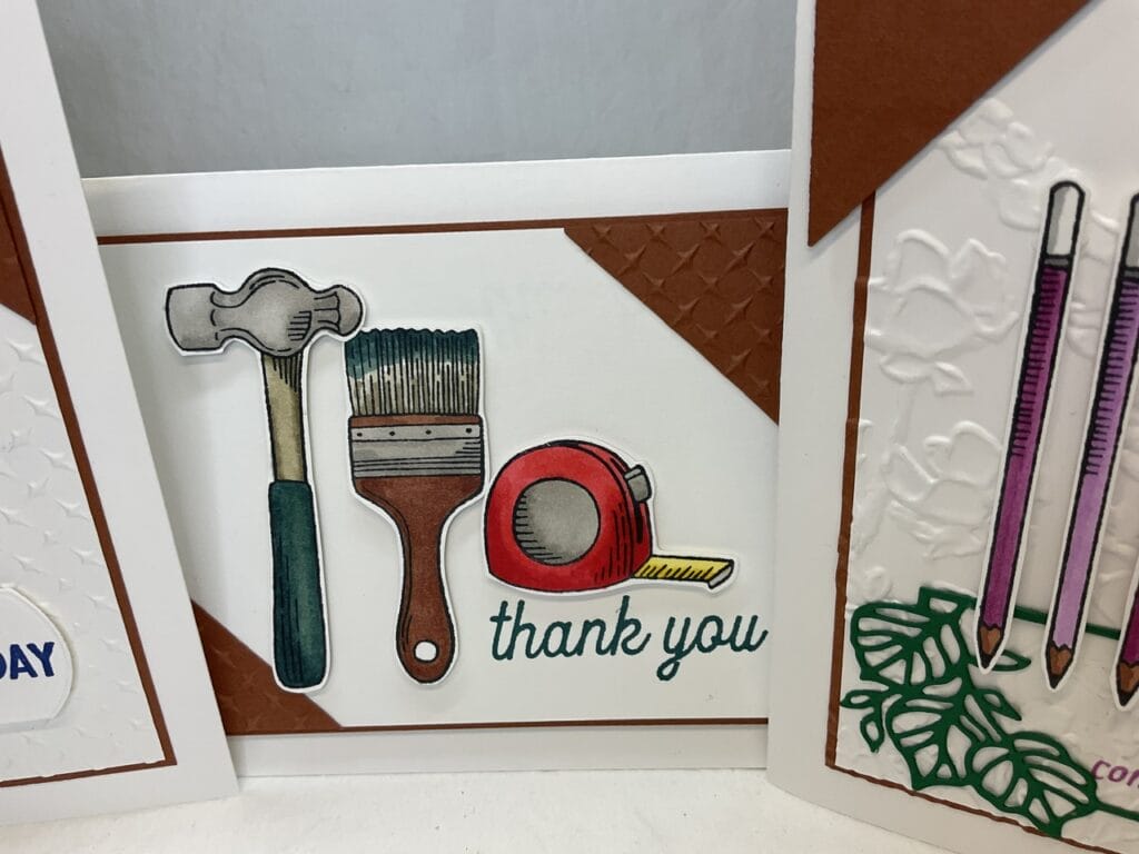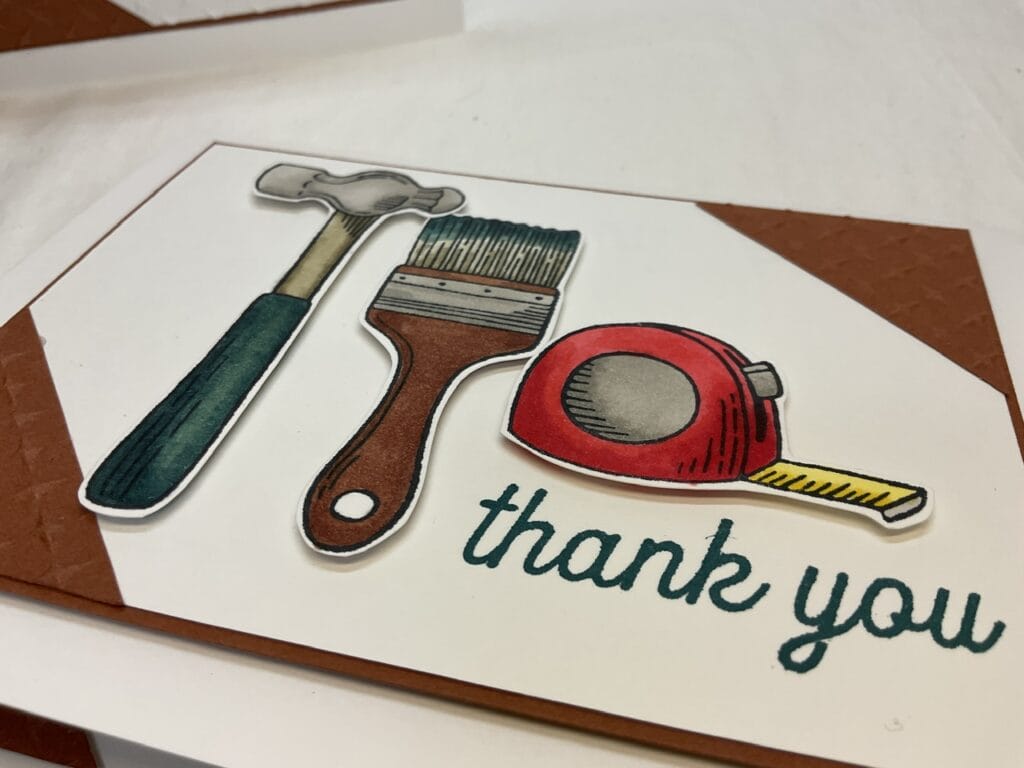 I have been waiting and waiting to dive in and have fun with this bundle! These projects use the SAB(sale a bration) coordinating with this bundle… it’s so fun! The next project will use just the bundle and coloring with the blends. AND there are dies in this bundle to make tools with dies. Imagine the tools die cut and using foil paper for the metallic tool parts! This card features a ‘new to me’ fun fold. The fold works perfectly with this card. The DSP is bright and colorful, the focal point is bold and just a few pieces, it goes together easily… a recipe for the perfect card!