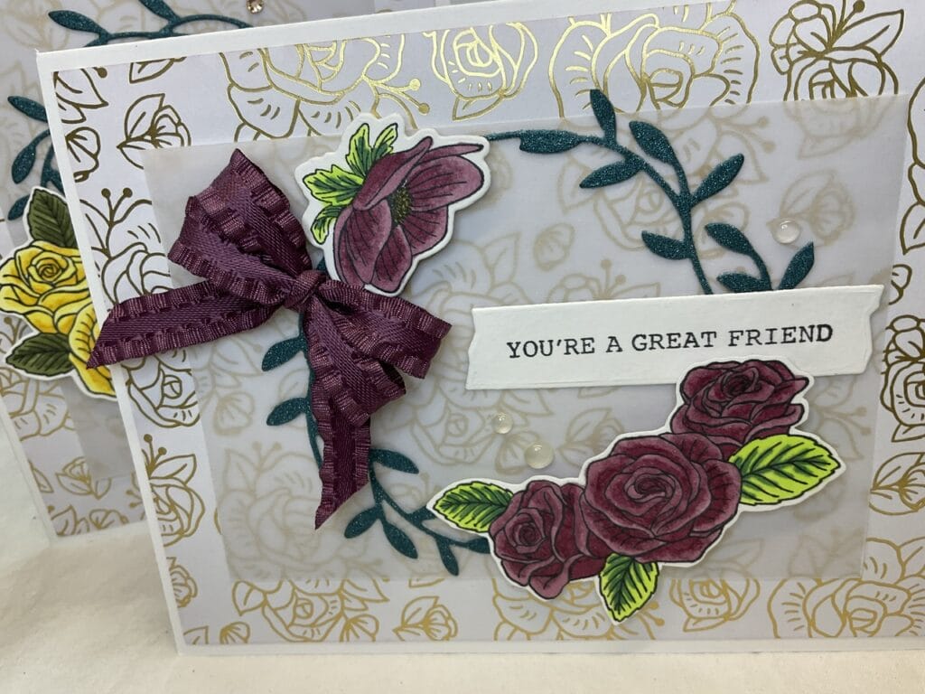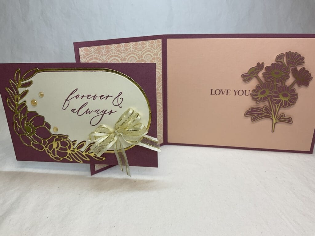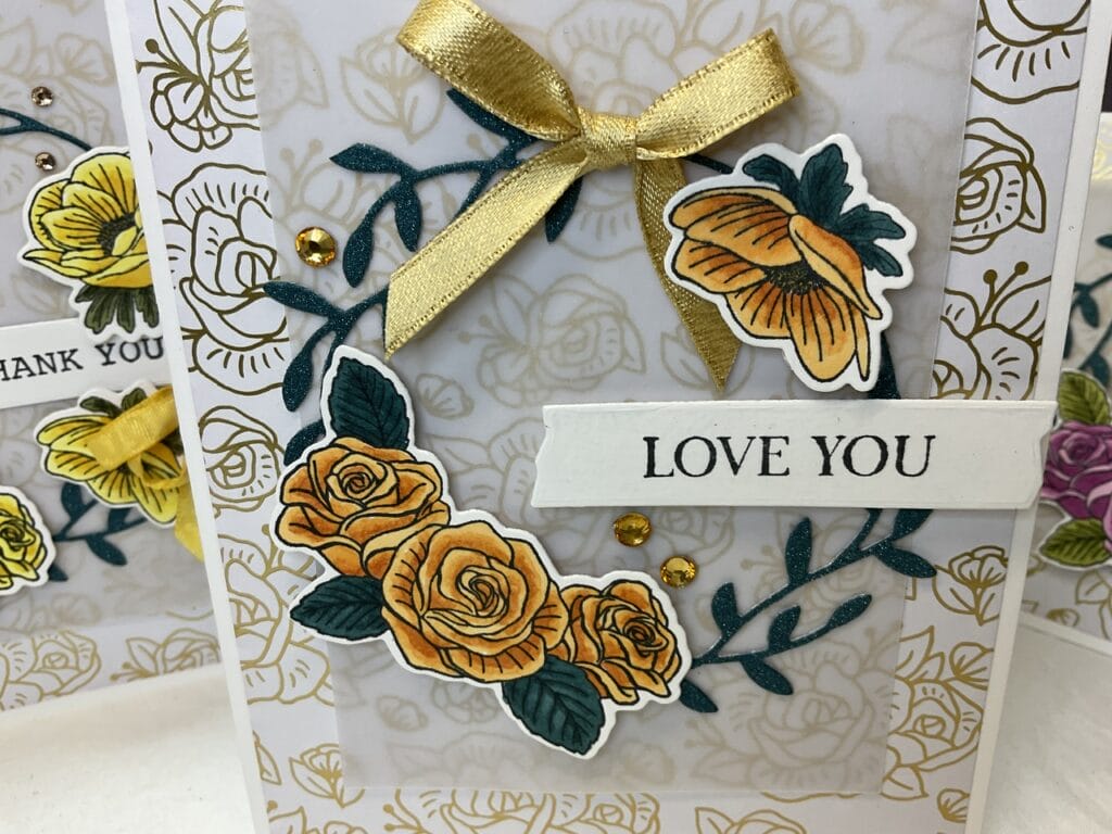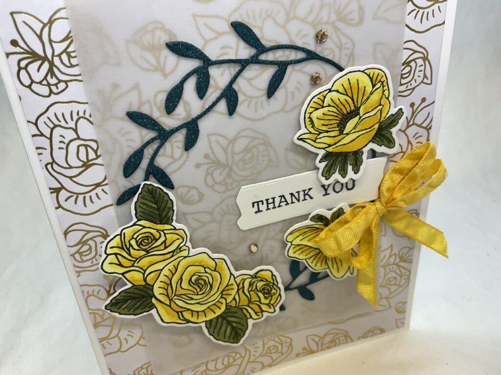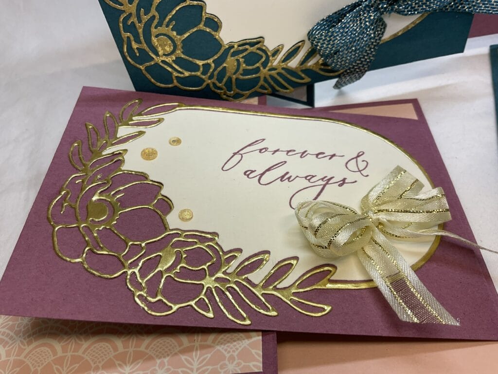 This Product Suite is absolutely beautiful! Many items will be carried over to the new catalog too! The minute I saw it I thought wedding and anniversary. It has been so hard to save it for NOW! I copied this card from Stamp Your Art Out and love it! What do you think?