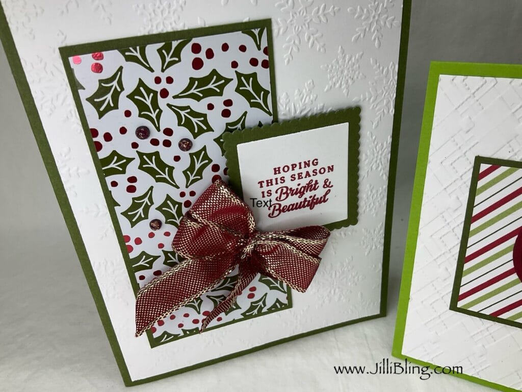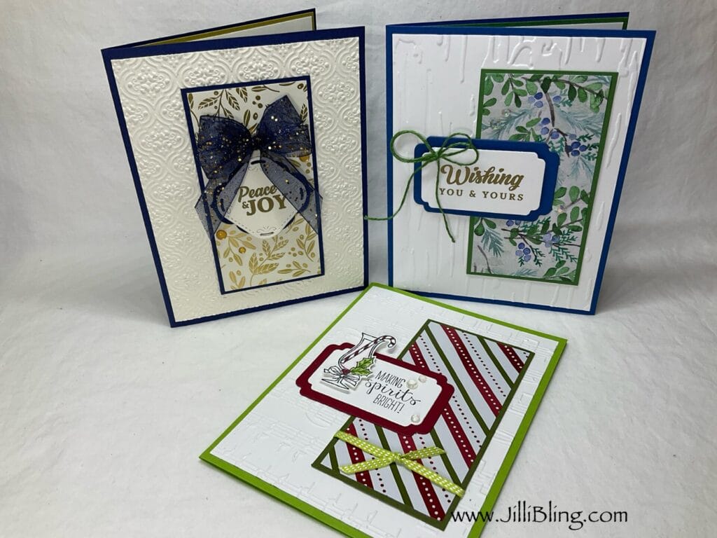 If you watch stampin crafty videos, you probably love our hobby and can relate to this statement: I have SOOOO MUCH designer paper. I collect it because I love it. I don’t use it because it’s so pretty. It collects! Today’s project finally uses just a bit. One sheet cut to 2 x 4 makes 18 cards! I use the same size cut papers for each card. Many of the products I show are retired. The project I make used current products. I encourage you to cut up one sheet of your favorite DSP and make a few cards. I have a feeling this will be one of your favorite cards… because you used your favorite DSP!