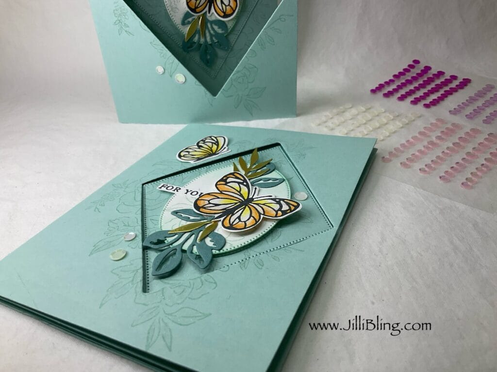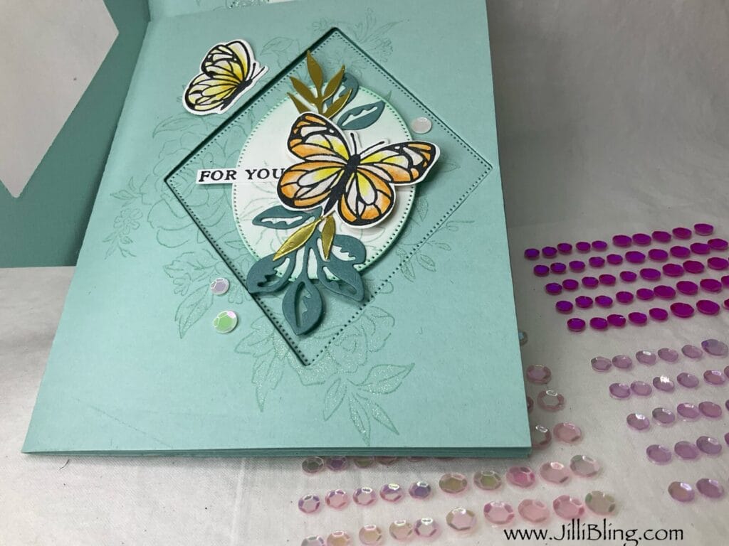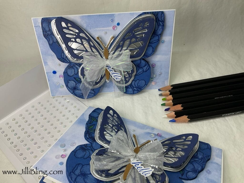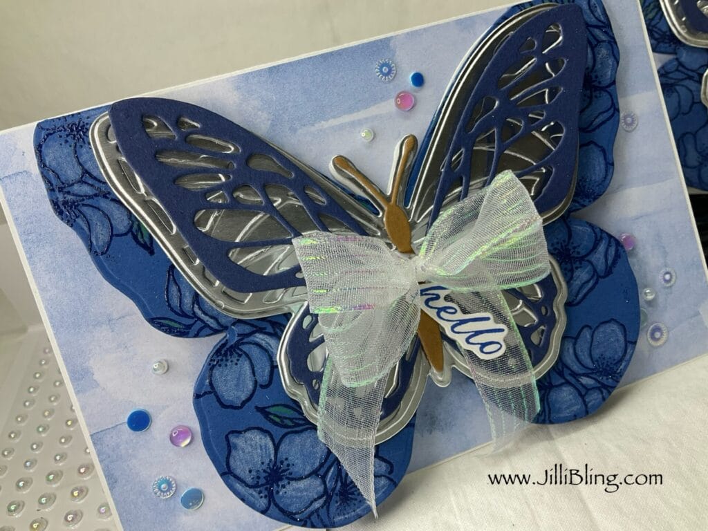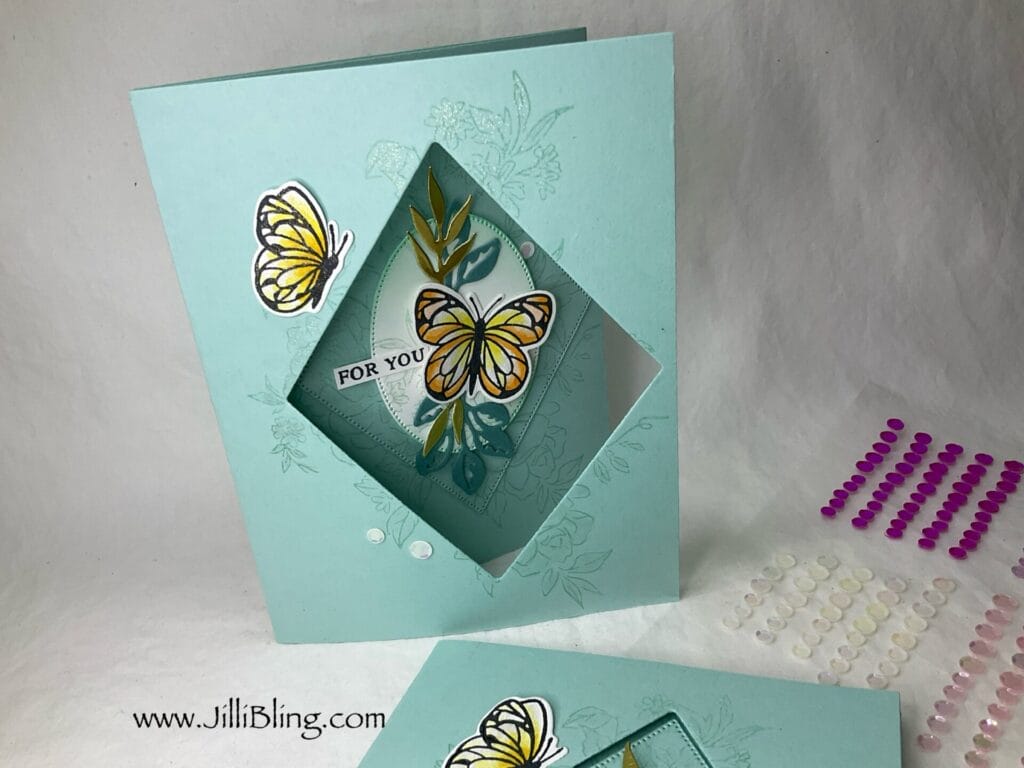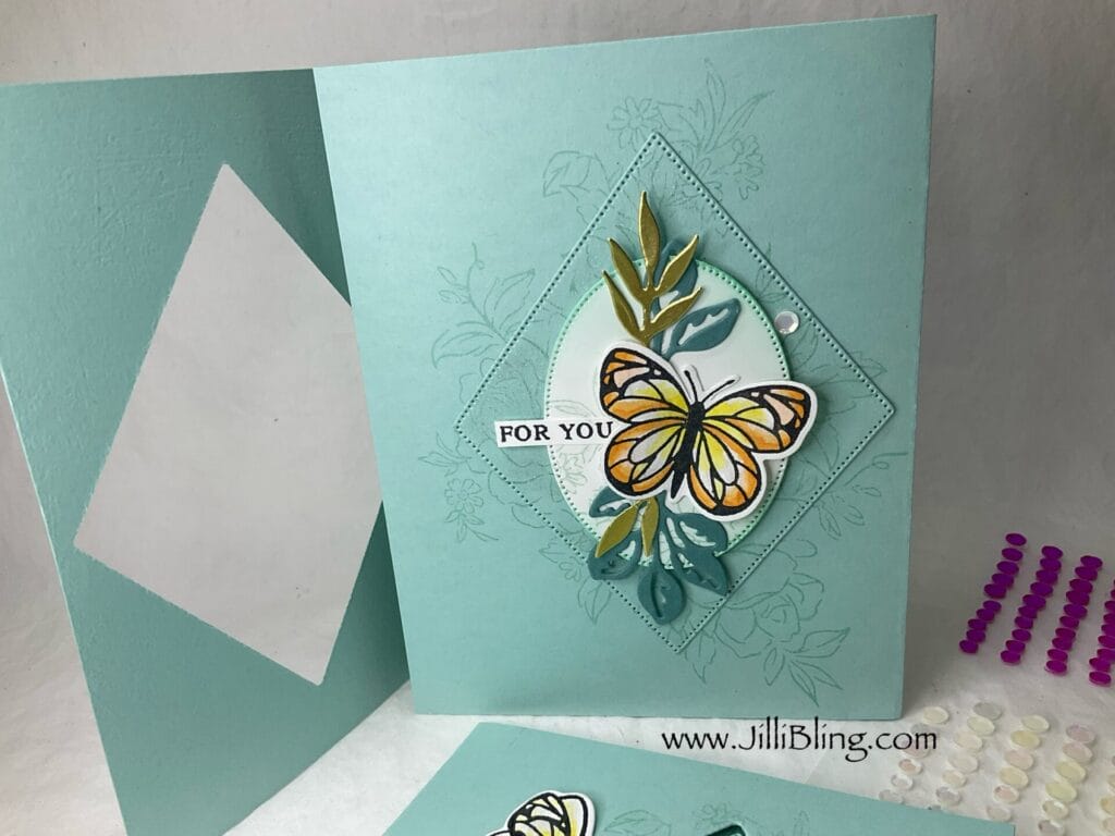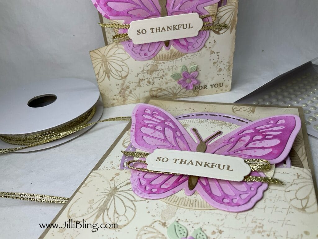 I am so ready to have Beautiful Butterflies visit my garden. I am so ready I think it’s time to find a few more new flutter friendly plants. This bundle includes the stamp set, dies AND hybrid embossing folder. I will make three different cards using this bundle and will use most of the stamps/dies. What do you think?