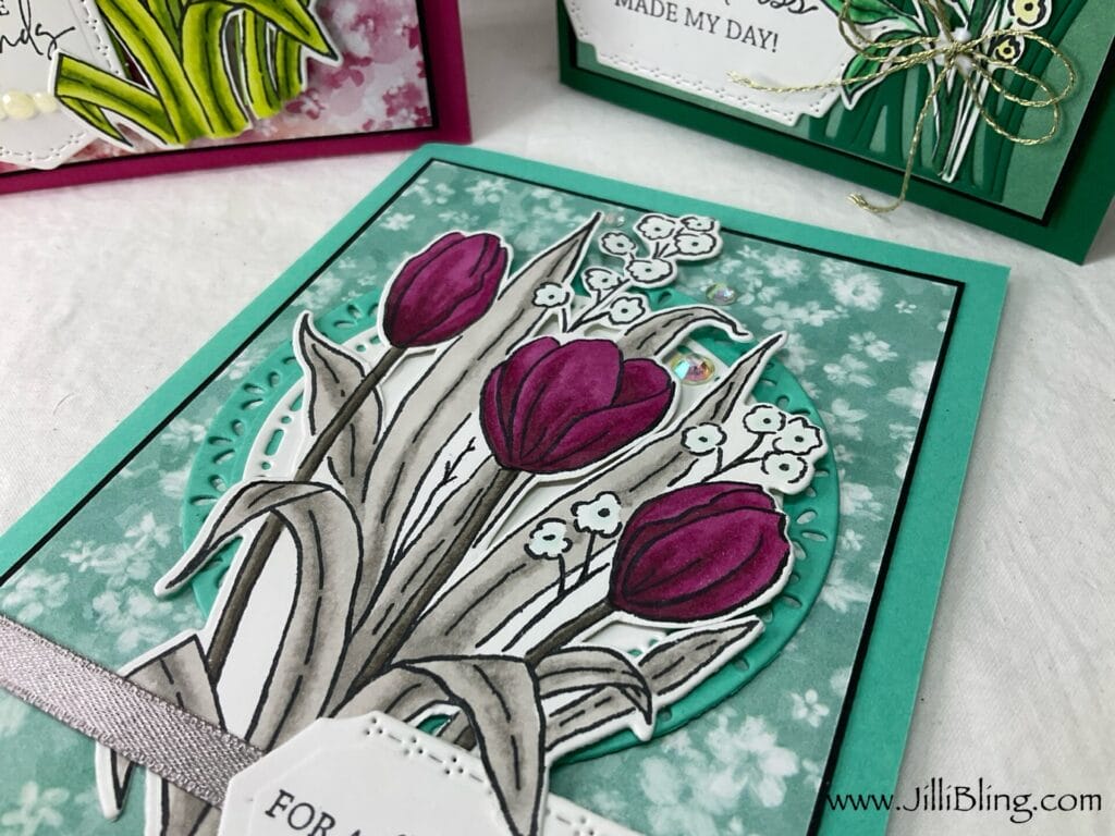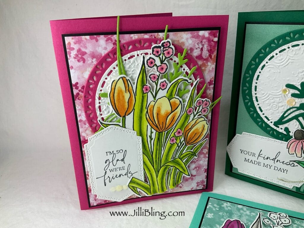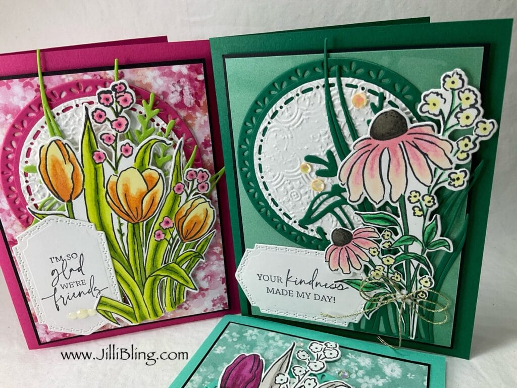 Do you like coloring? It seems to be a definite Yes or No at class. I like coloring, but just a bit. This bundle, Mixed Florals, is perfect! The images are beautiful and calling to be colored. Oh…oh…, there are dies to cut out ALL the images! Yay! The words! Mixed Labels has lovely words/greetings. The dies are the reason I bought the bundle and was thrilled to see the stamps. Soooo, combine the beautiful flowers with the greetings and here we are… what do you think?