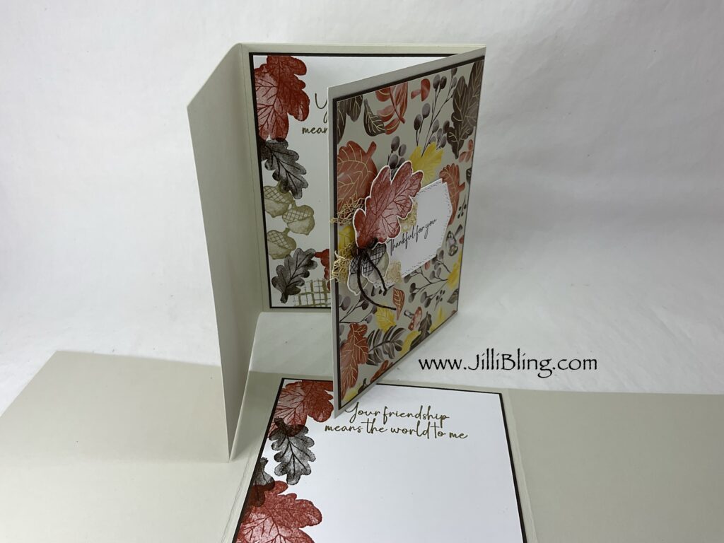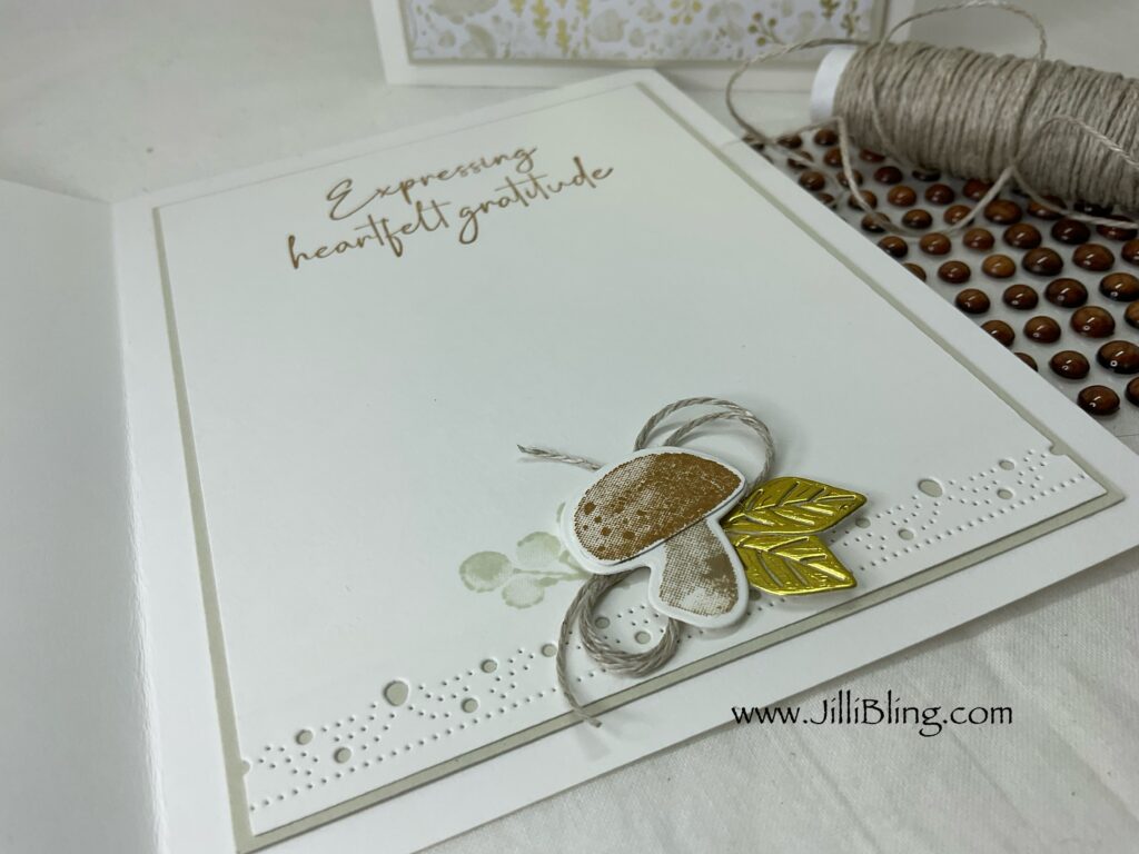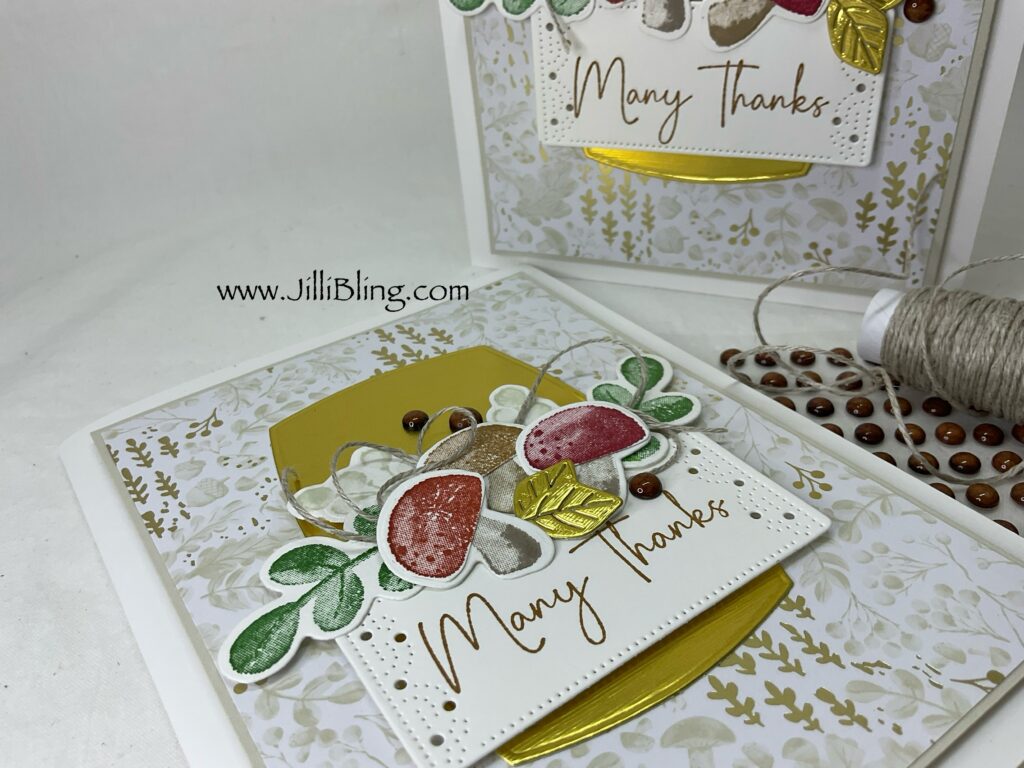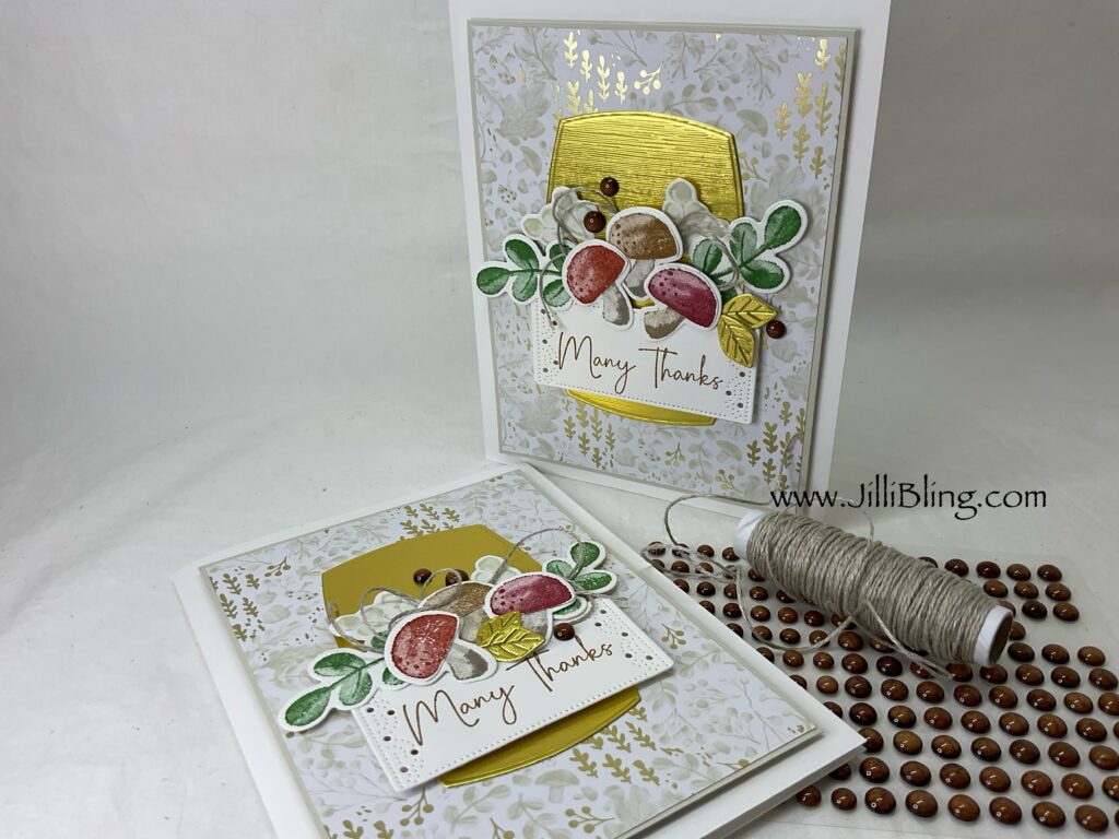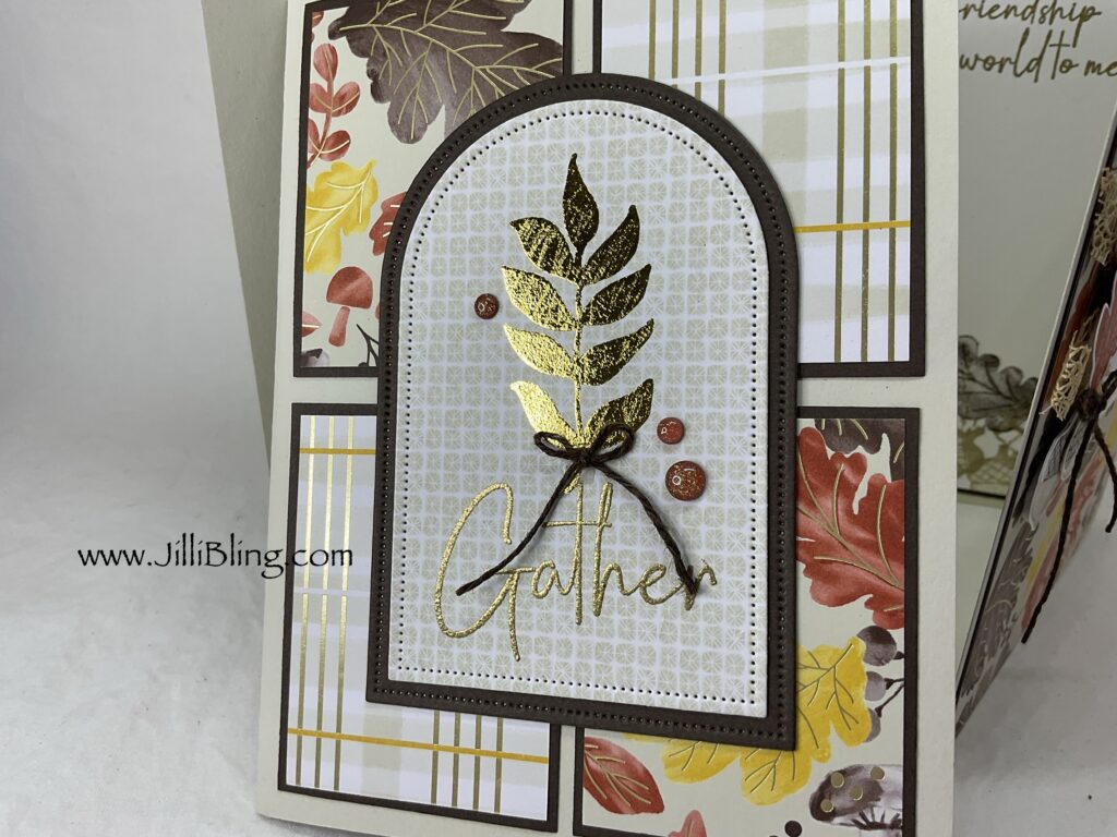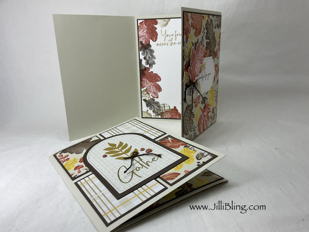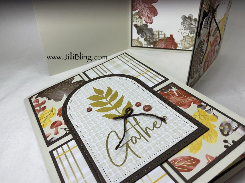 Gathering Moments Bundle is just what you need to make fall cards. The images are dist-Ink-tive (perfectly shadowed/highlighted to create magic) and perfect to make beautiful cards. The dies include outline dies plus two big leaves (two part). I will make three different designs using this bundle. What do you think? Do you have a favorite?