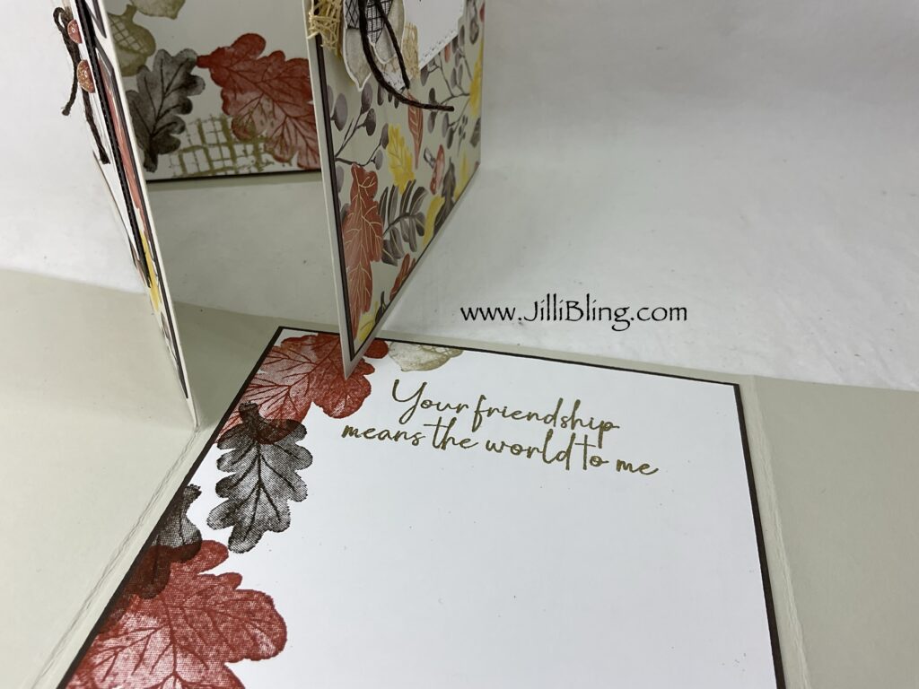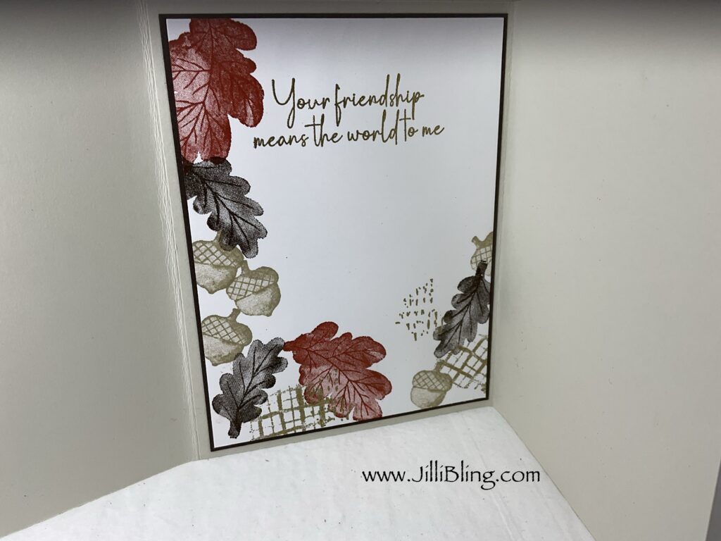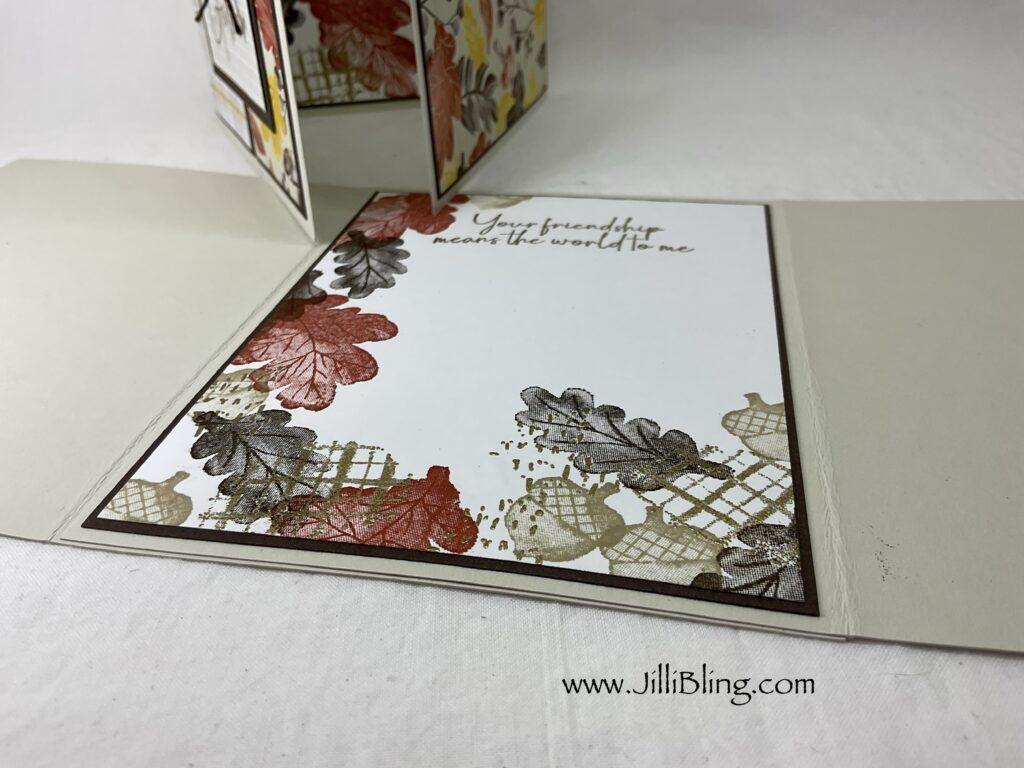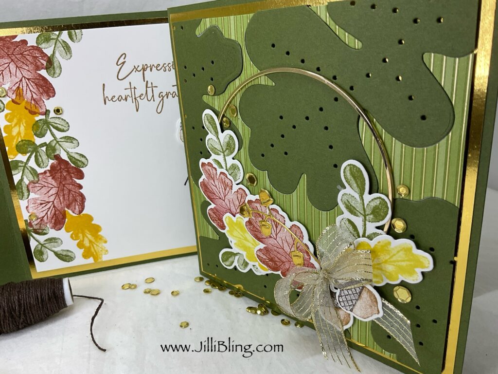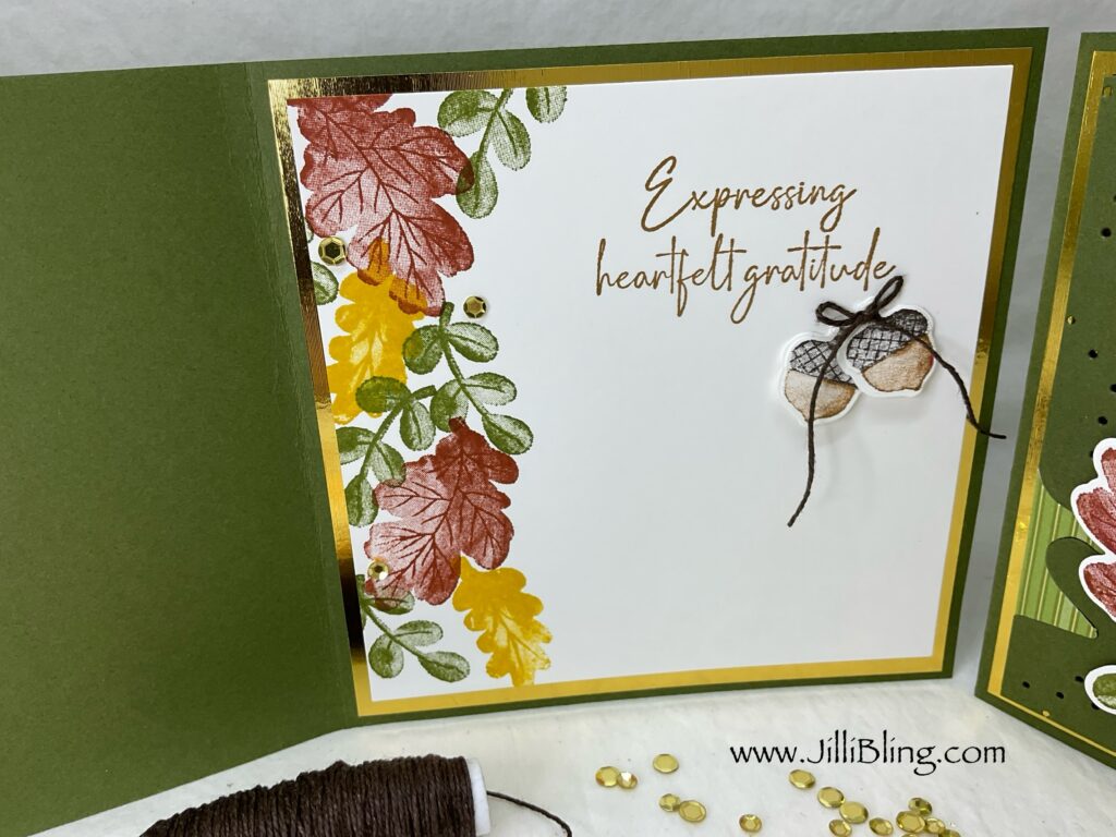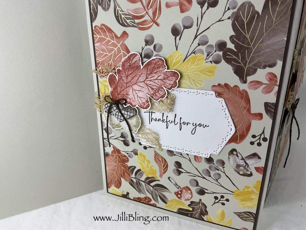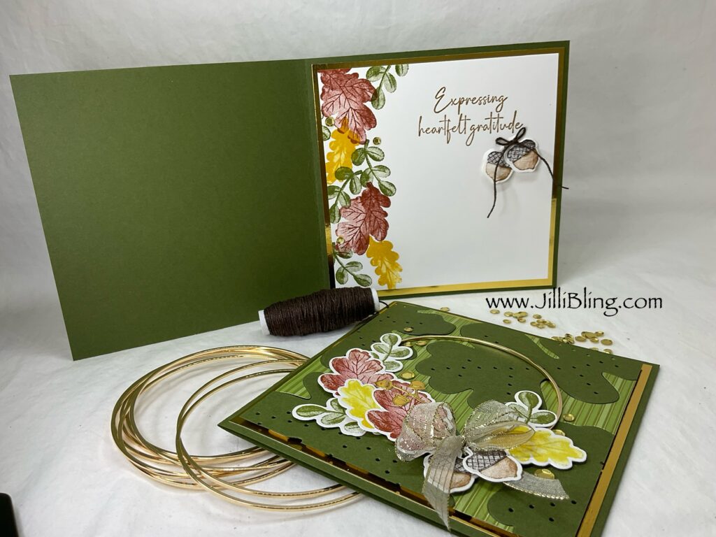 Gathering Moments Bundle is just what you need to make fall cards. The images are dist-Ink-tive (perfectly shadowed/highlighted to create magic) and perfect to make beautiful cards. The dies include outline dies plus two big leaves (two part). I will make three different designs using this bundle. What do you think? Do you have a favorite?