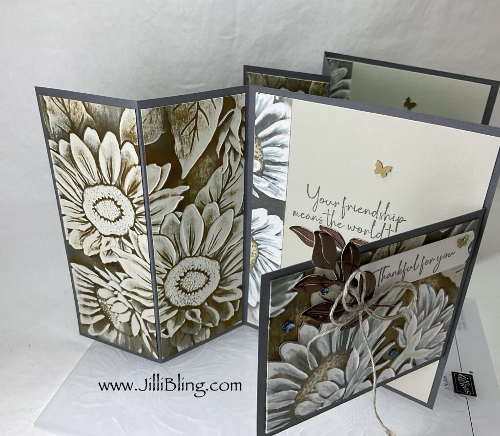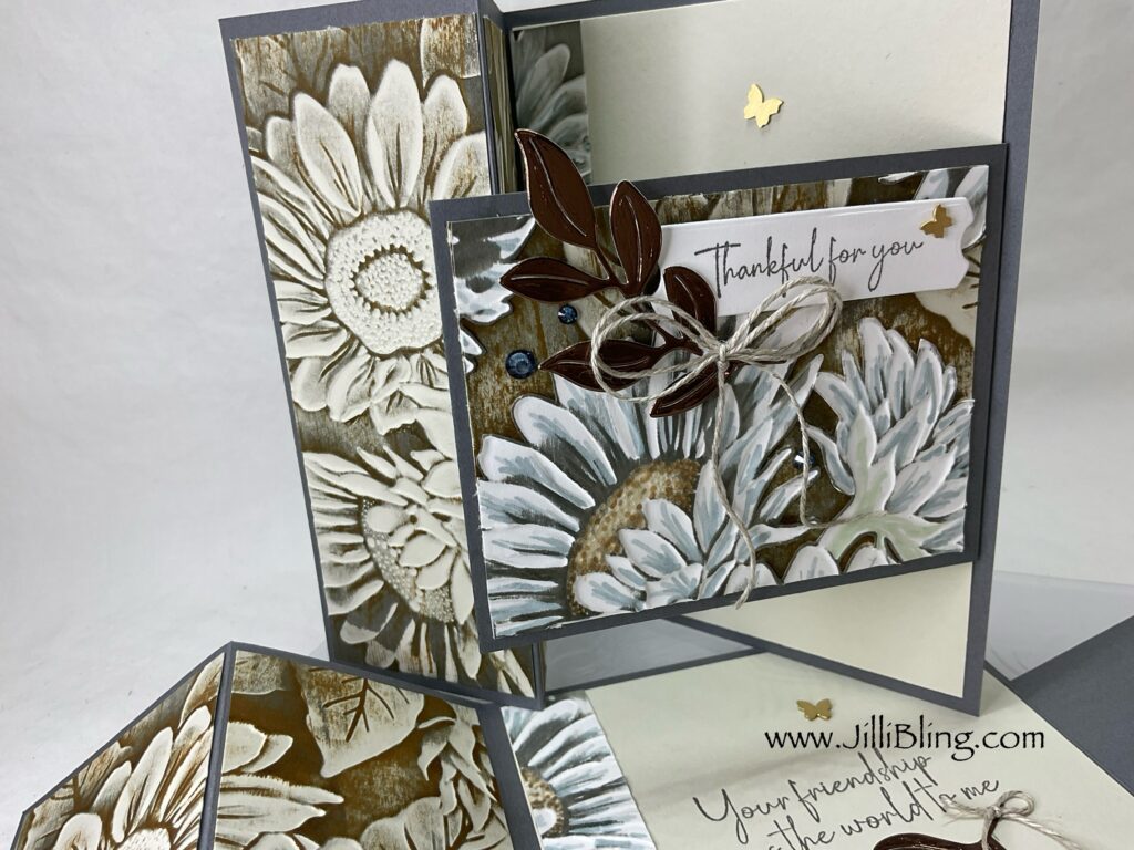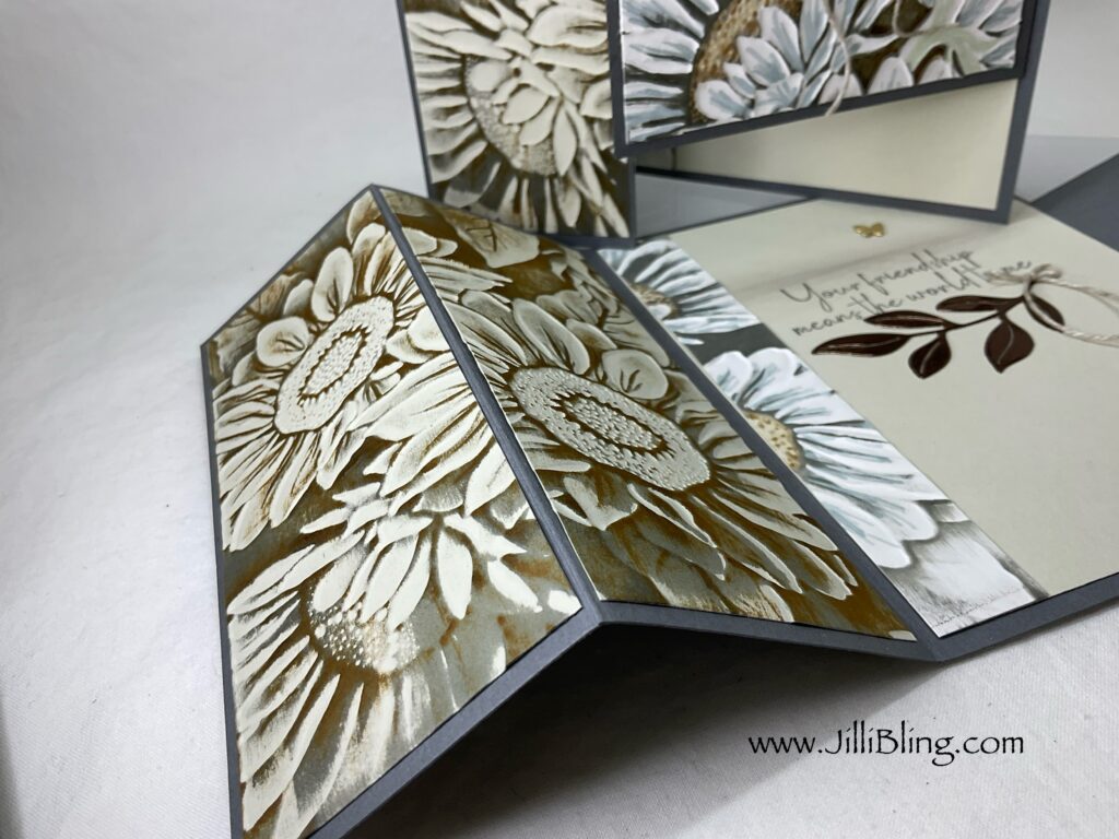 As a Thank You to those placing September orders (merchandise $50+) I would love to mail you this FREE card kit. (Orders of -merchandise $75+ get free card kit AND package of bling.) Without you I wouldn’t be a demonstrator and able to share projects that might inspire you! I always do my best work so you feel appreciated. I would love to send one of these to you! 🥰 Complete your card kit using stamp sets you already have at home. This card kit contains embossed sun flowers and everything you need to complete you card, minus the two greetings. This embossing folder is amazing. I would LOVE to see what you make!