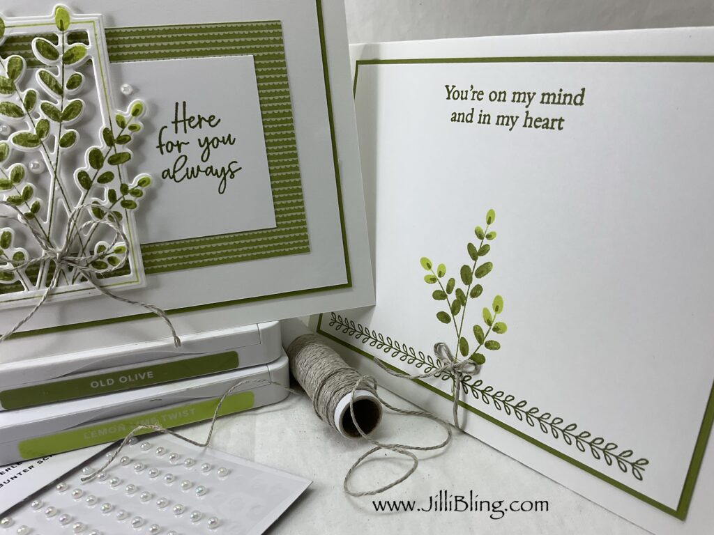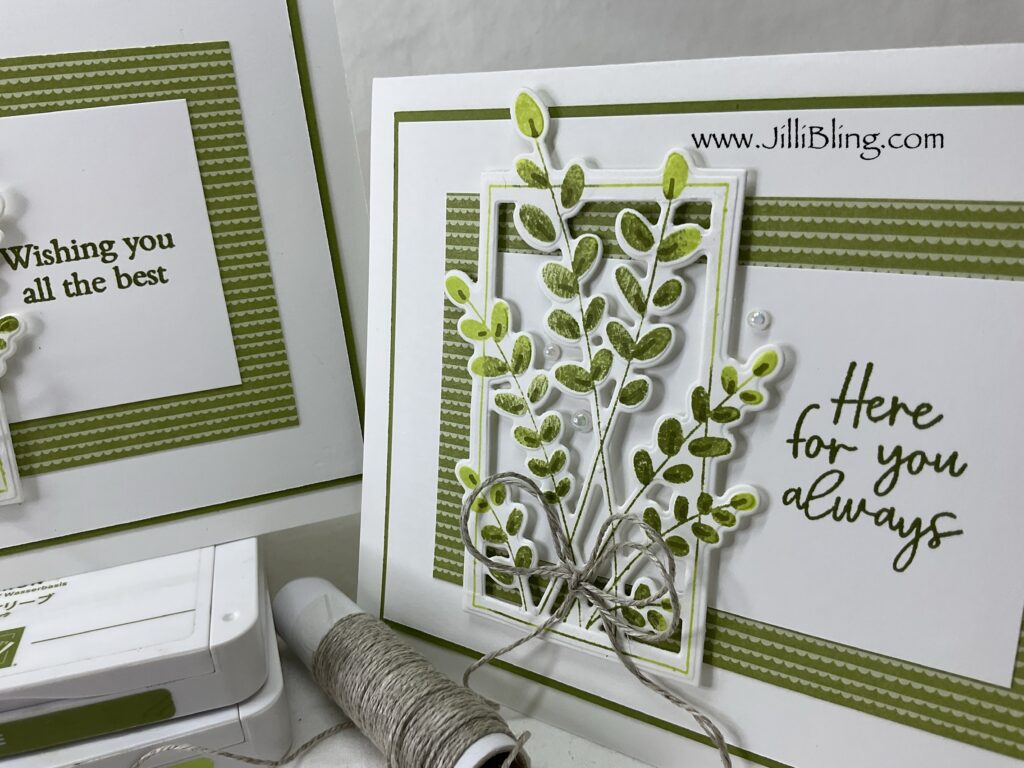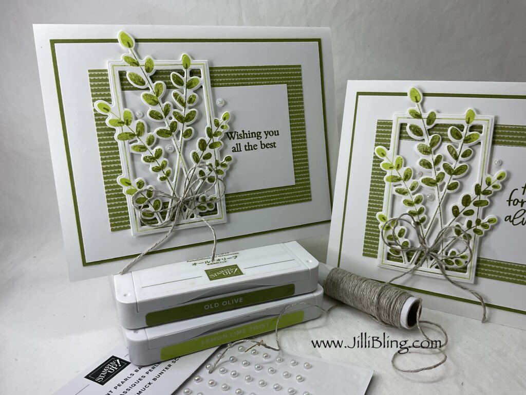 Talk about a fun project…. This bundle is awesome! The stems can be in any color you can imagine. Following this layout, matching your stems to your favorite DSP is a guaranteed YES! The dies are easy to use too. This project I used two greens, lemon lime twist and old olive. What do you think?