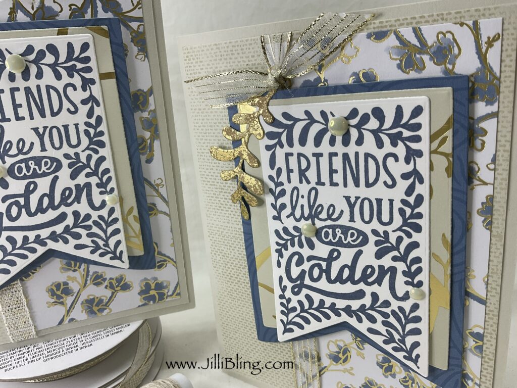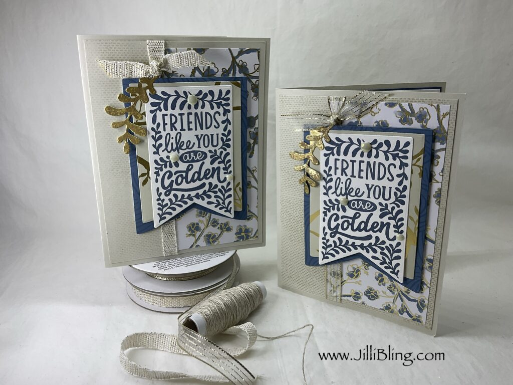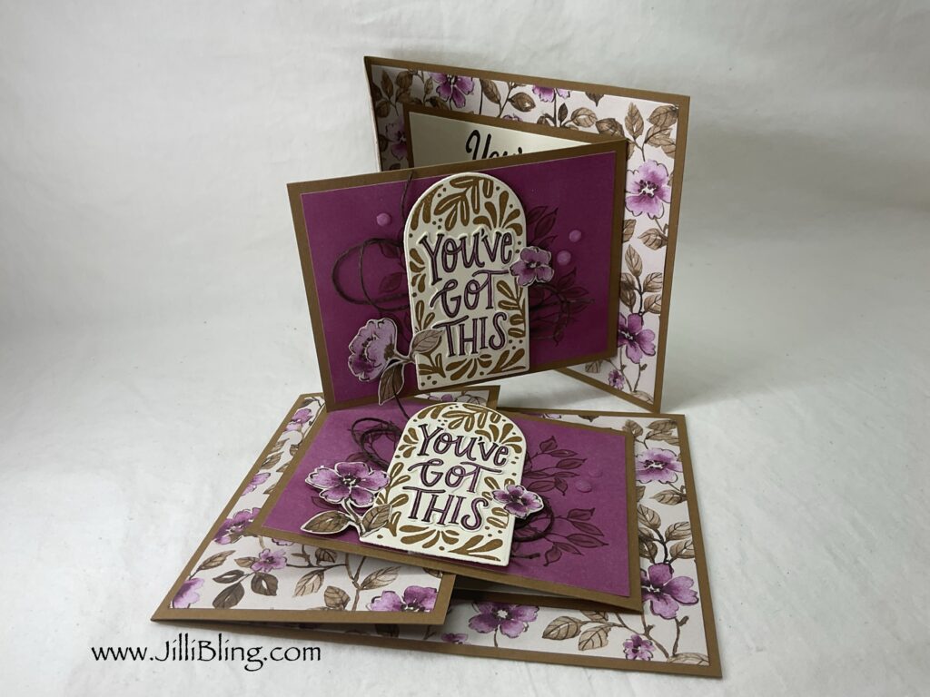 The Creative Haven bundle is nice for many occasions. First of all, the stamps look awesome. They are the focal point and you just decorate around the greeting. They are each framed/decorated and have a die to perfectly cut them out. Do you have some favorite (perhaps hoarded) DSP? This is a great place to use it… just a it goes a long way. I will make three designs. What do you think?