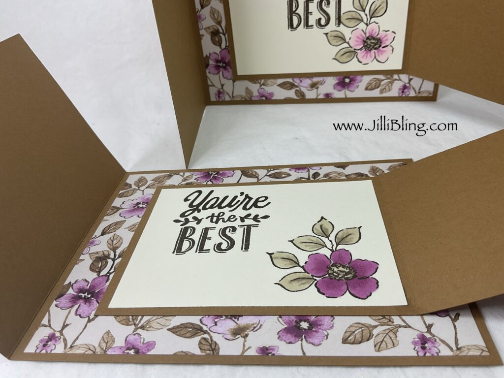 Berry pecan Base 8 1/2 x 4 1/4, score at 5 1/2 Big DSP 5 1/4 x 4 Little DSP 4 x 2 3/4 In pecan 8 x 3 Top DSP 3 3/4 x 2 3/4 In vanilla 3 3/4 x 2 3/4 2x stampin 3 5/8 x 2 1/8