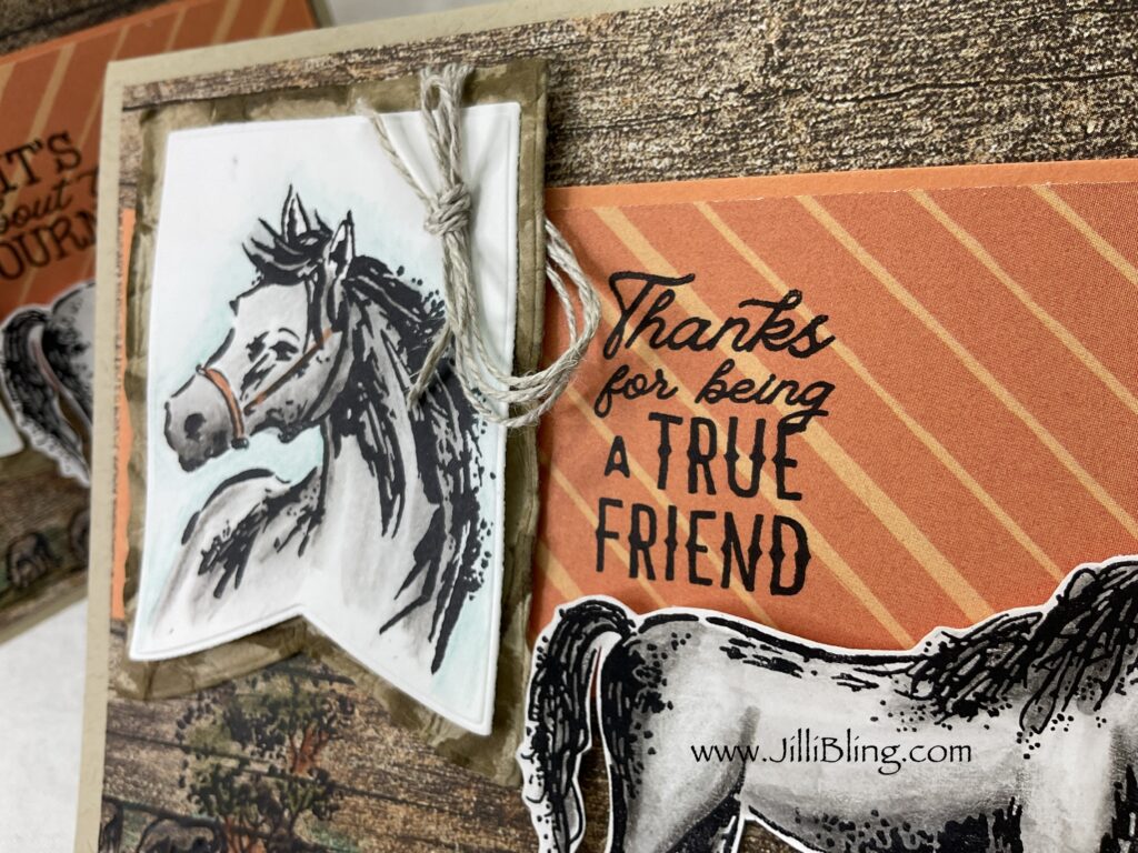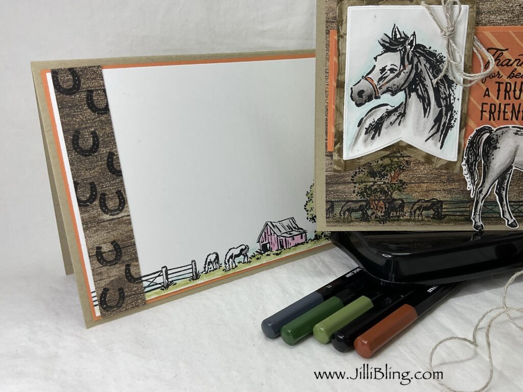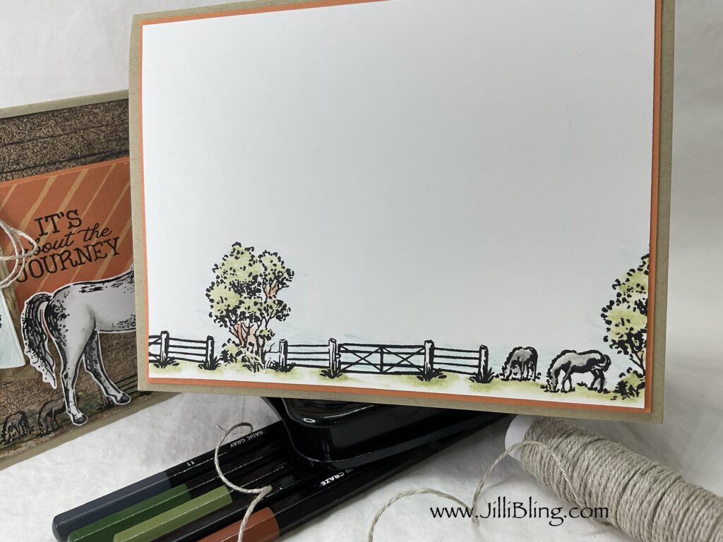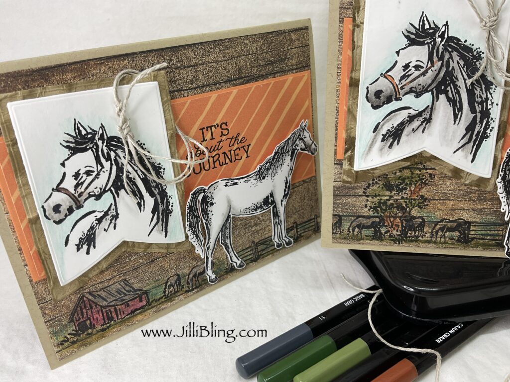 Unbridled Beauty stamp set is so pretty! It’s been some time since SU released a horse stamp set. I love this one…. the horse images are elegant! I love all the side background images too. I use watercolor pencils to add a hint of color.